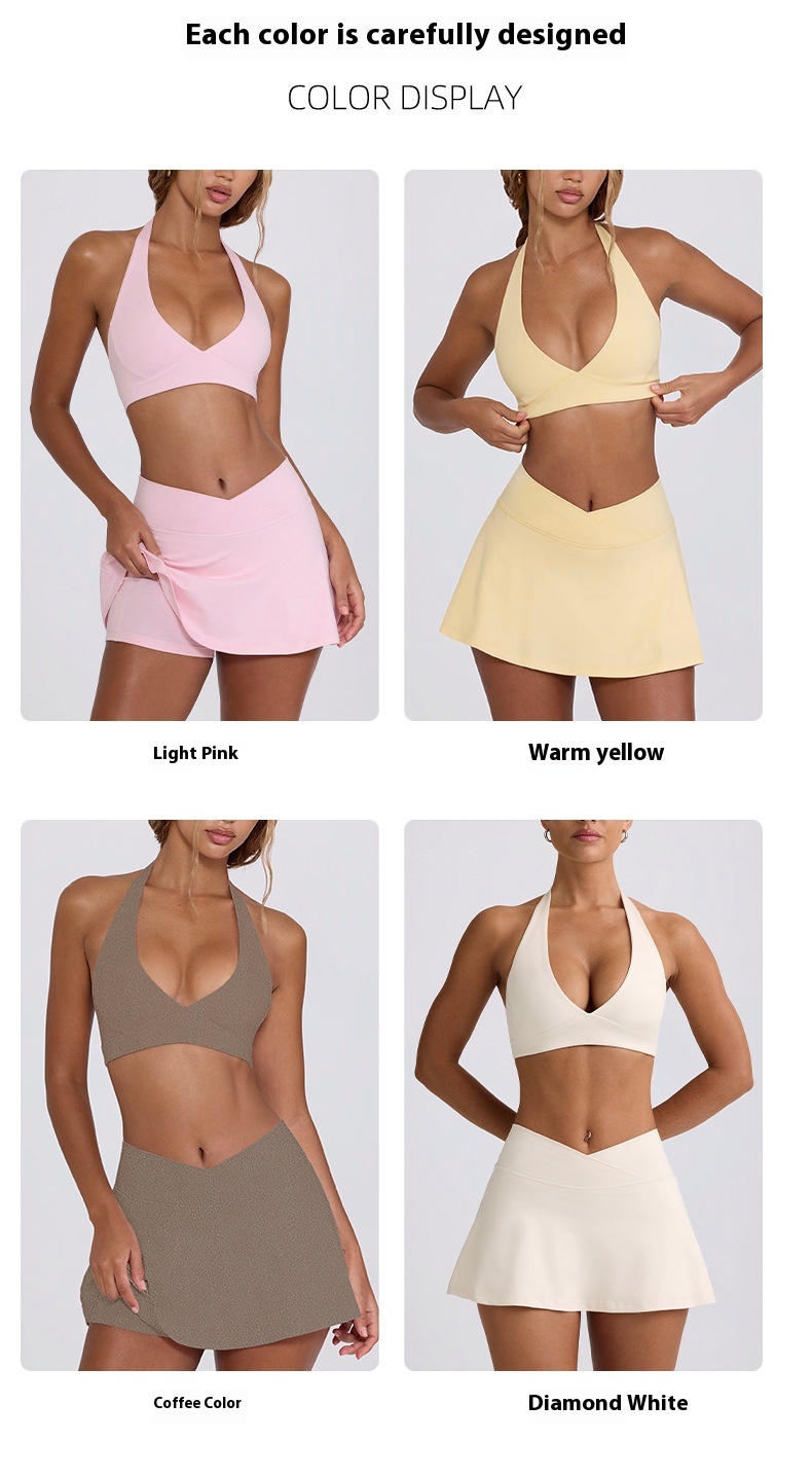 Color: short skirt-Diamond White, short skirt-warm yellow, short skirt-light pink, short skirt-coffee (cationic), short skirt-Diamond White, short skirt-warm yellow, short skirt-light pink, short skirt-coffee (cationic), top-Diamond White, top-warm yellow, top-light pink, top-coffee (cationic)